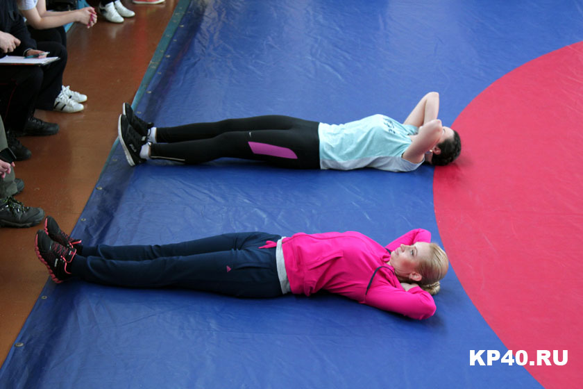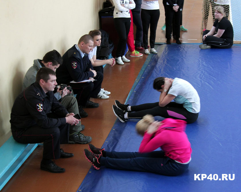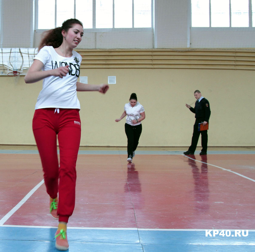 Из тира едем в спортзал «Динамо», где девушки будут сдавать нормативы по физической подготовке: челночный бег и пресс.
