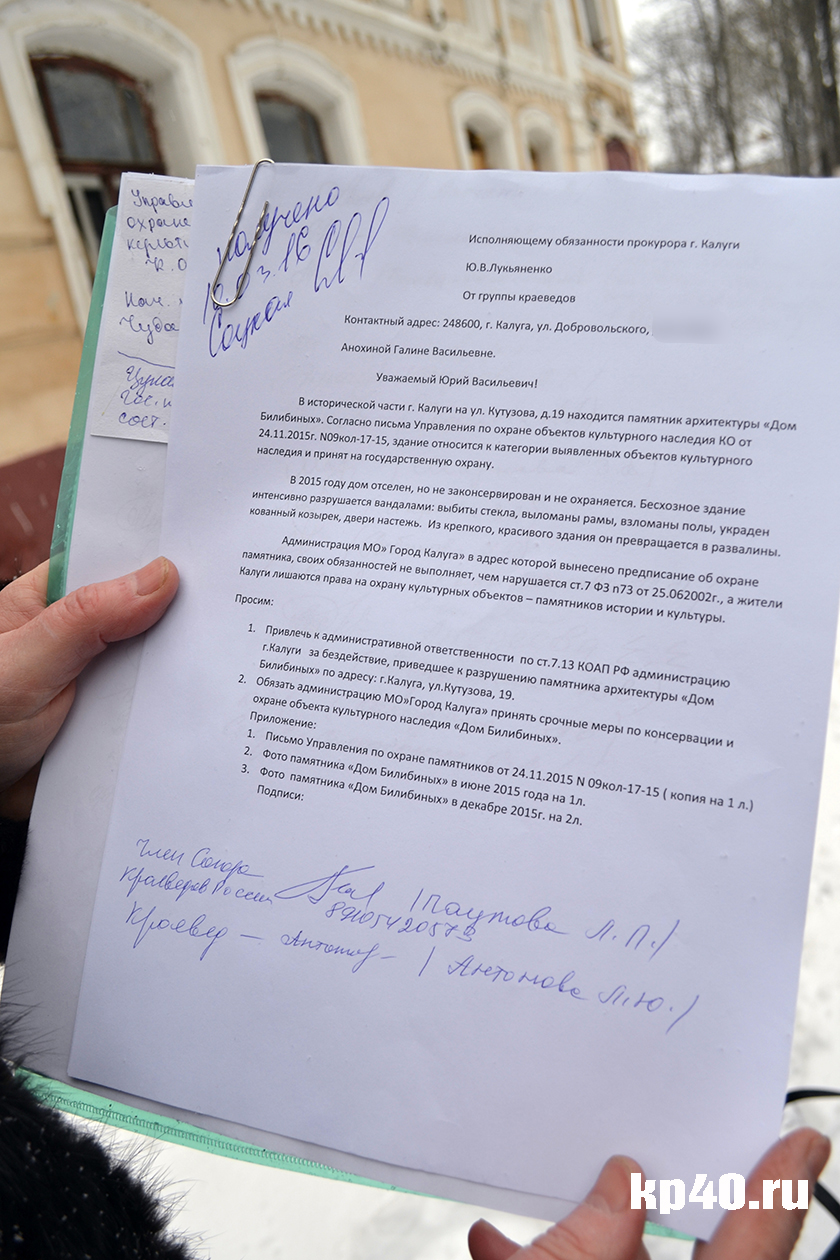 Калужские краеведы обивают пороги областных и городских учреждений, пишут письма с требованием законсервировать памятник архитектуры.