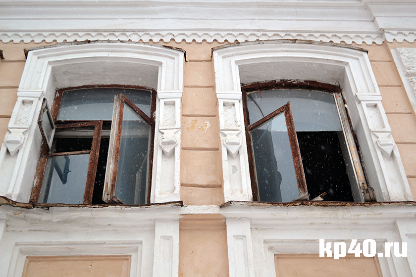 - Что мы сегодня видим: кованый козырёк над центральным входом украден, нет ни одного целого стекла, всё настежь - дверей нет. Внутри даже полы выдраны, - с горечью рассказывает Людмила Паутова. – Тут калужский ампир - три окна будто из деревянного зодчества перешли в каменное. Выдрали месяц назад раму с витражами. Когда отселяли жильцов, всё было цело. Здание разрушается. Производит вид бесхозного. Такое наплевательское отношение к памятнику архитектуры! Дом брошен на произвол судьбы. Нет хозяев в городе, которые бы защищали наше культурное наследие.