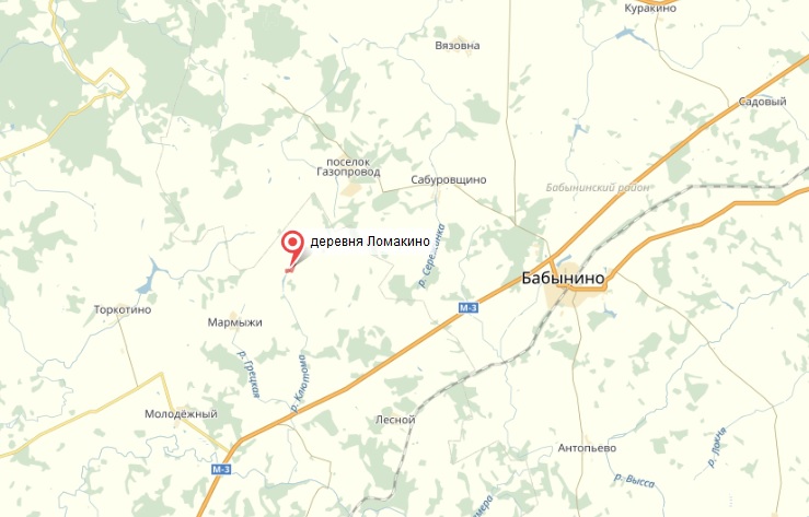 Деревня Ломакино расположена в 16 километрах от Бабынино.