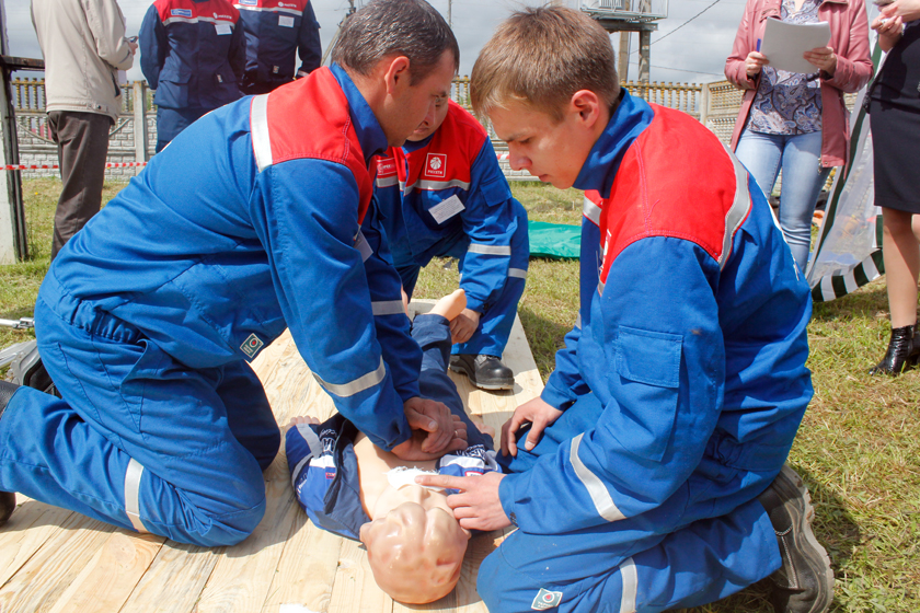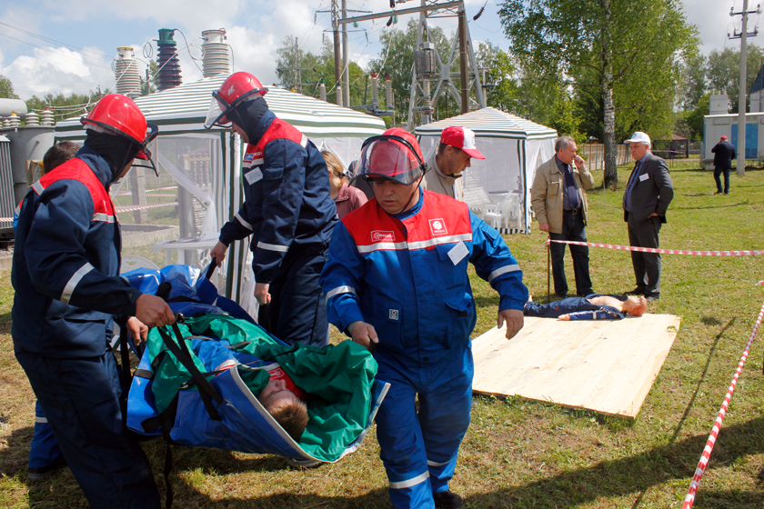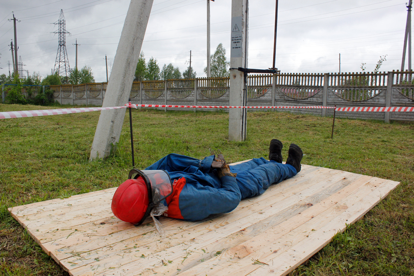 Как уже было сказано, соревнования лучших из лучших бригад по ремонту подстанционного оборудования 35-110 киловольт «Калугаэнерго» проходили в семь этапов. Один из них – реанимация попавшего под напряжение 10000 вольт человека, получившего почти смертельный удар током.