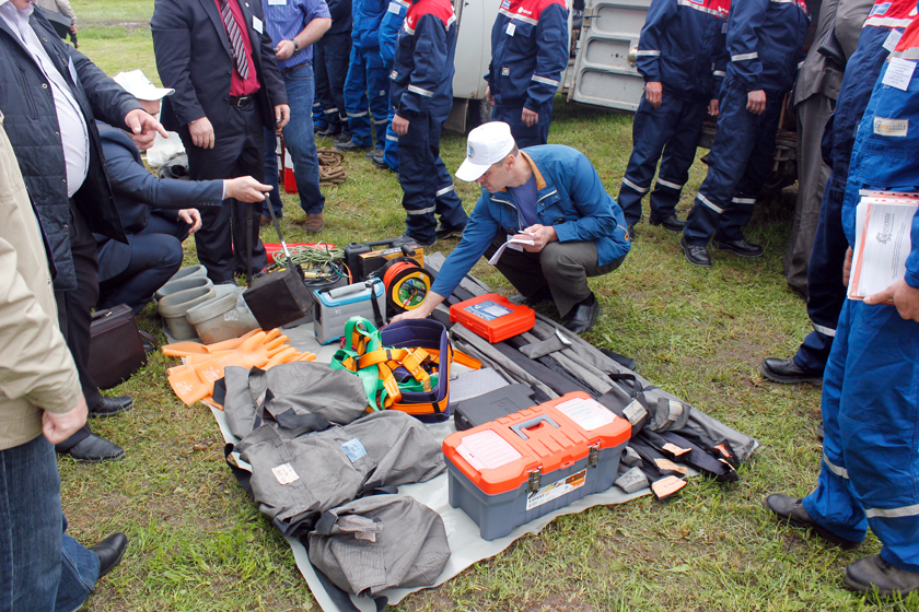 Но перед стартом соревнований – нулевой этап. Жюри проверяет оснащение бригад защитными средствами и инструментом, с которым им предстоит работать в ходе прохождения этапов соревнований.