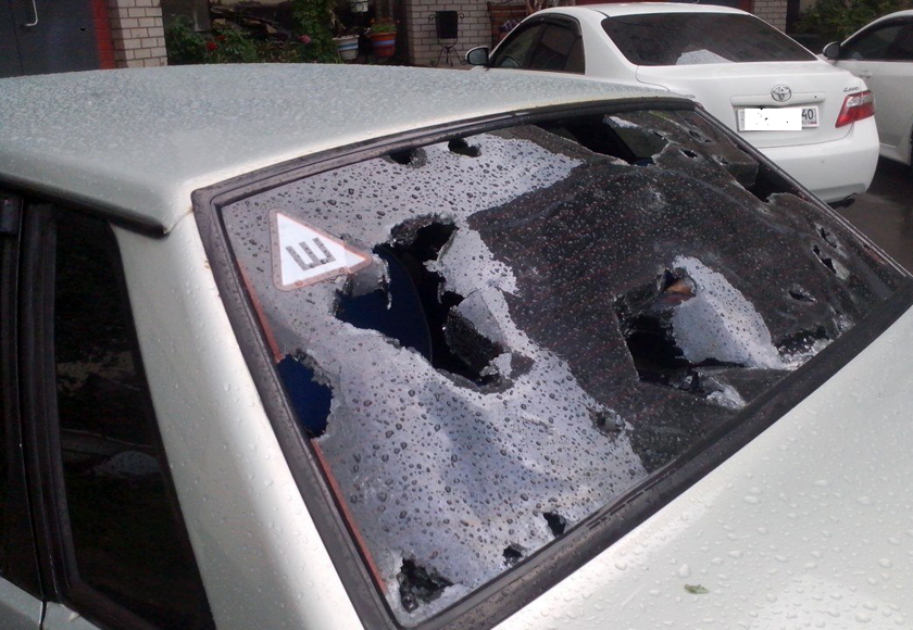 В Малом же огромные градины беспощадно уничтожали автостёкла.