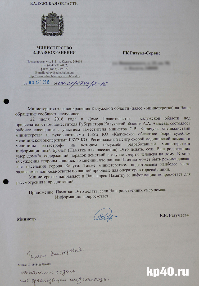 С уважением, Ассоциация похоронных компаний Калужской области.
