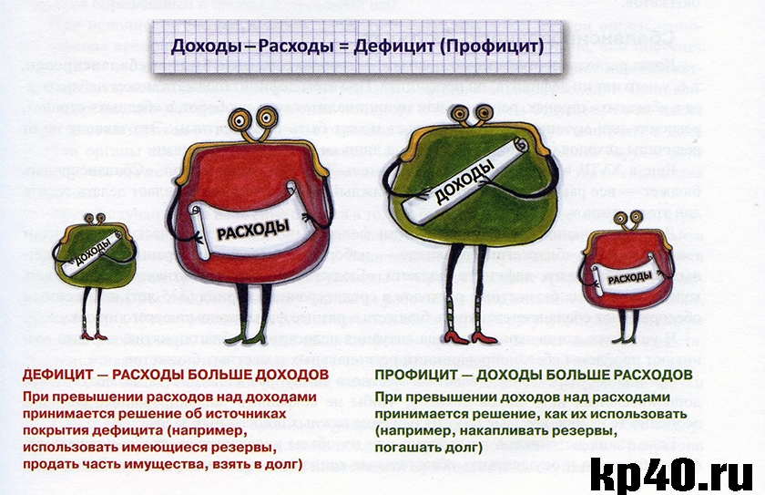 Вот так просто и понятно авторы учебника объясняют, что такое дефицит и профицит бюджета.