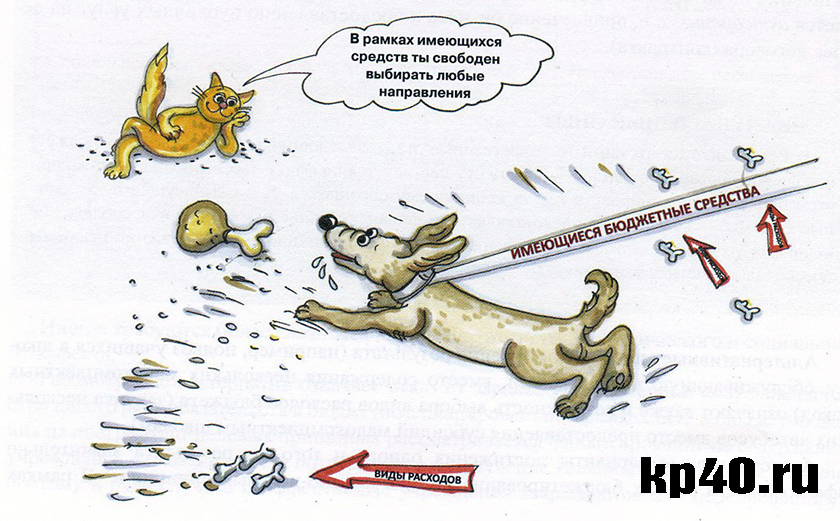 На этой картинке из учебника показано, как имеющиеся бюджетные средства сдерживают наши желания и стремления.