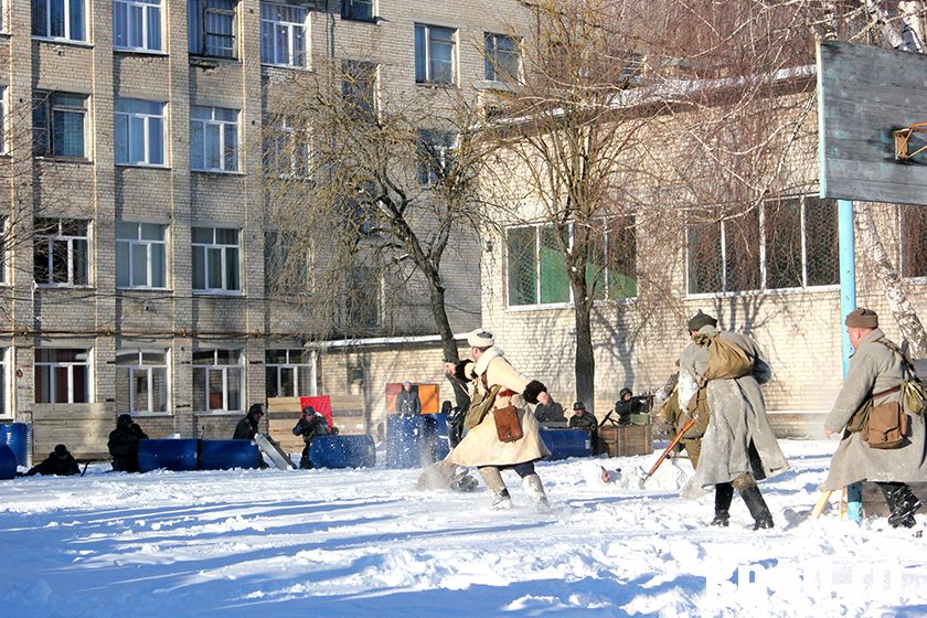 В субботу, 10 декабря, на территории школы №25 к юбилею реконструкторы показали эпизод военных действий, которые происходили в декабре 1941 года.