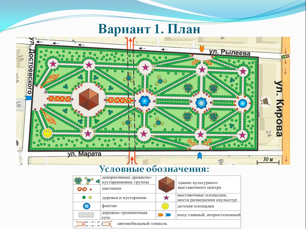 - Площадь перед ним могла бы стать местом проведения городских праздников, выставок под открытым небом, концертов. Нижняя часть квартала должна стать местом тихого отдыха у воды. Предполагается обустройство там пруда, который зимой будет превращаться в городской каток.