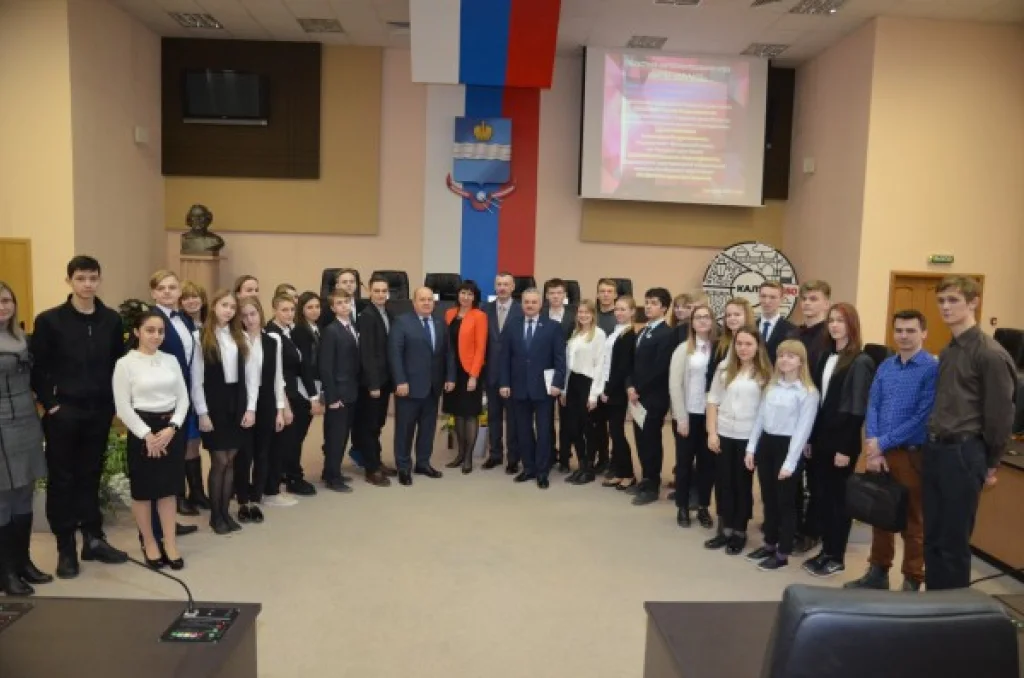 Сергей Владимирович рассказал ребятам об истории калужской Городской Думы, её структуре и основных направлениях деятельности, а также об особенностях избирательной системы Калуги.