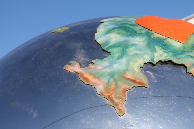 Глобус Калуги, установленный на улице Ленина, стал покрываться ржавчиной.