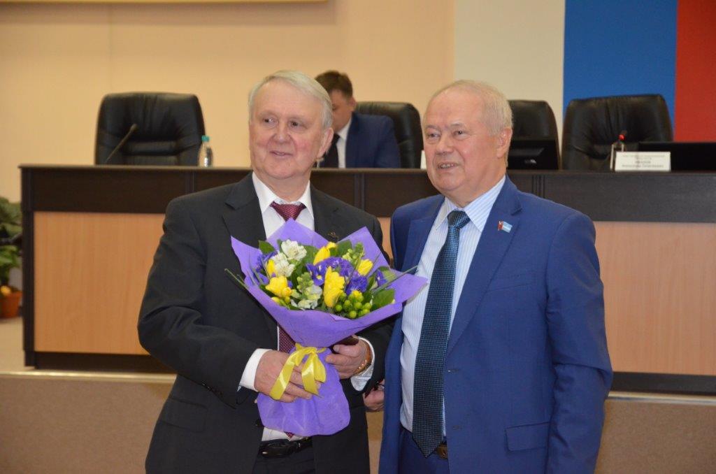 Глава городского самоуправления Александр ИВАНОВ вручил Почётную грамоту депутату Городской Думы созыва 1997 – 2001 гг. Виктору Алексеевичу Федулову.