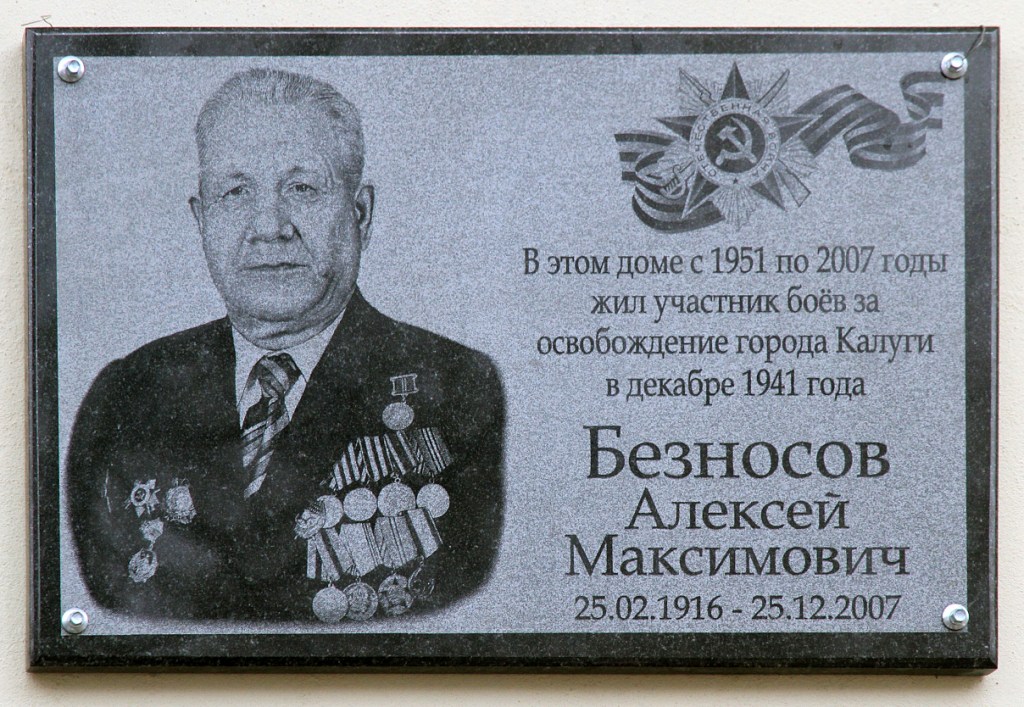 В преддверии Дня защитника Отечества в областном центре появилась мемориальная доска ветерану Великой Отечественной войны, освободителю Калуги Алексею Максимовичу Безносову.