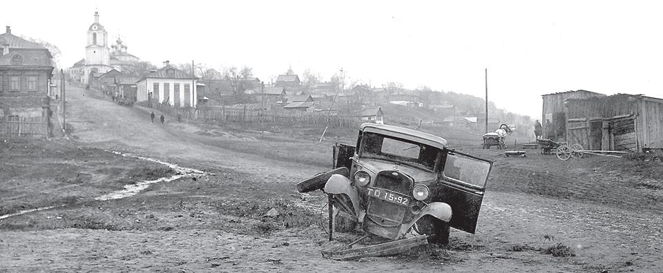 Авария передней ходовой части у грузовика ГАЗ-ММ на спуске улицы Смоленской. 1939 год. Фото из архива Валерия Продувнова.