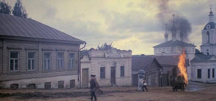 Июнь 1975 года. Панорама улицы Смоленской. Внизу церковь. На обочине припаркован автомобиль «Волга ГАЗ-21». Большинства запечатленных домов уже не существует.