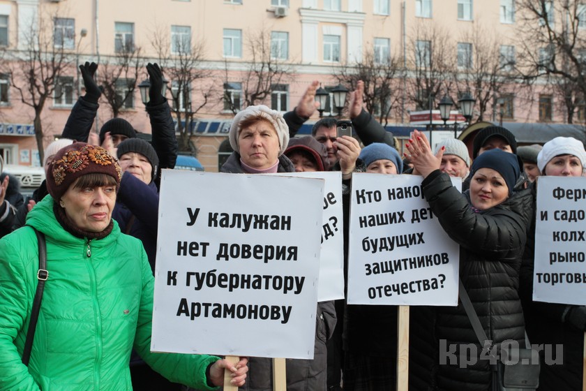Всего на Театральной площади собралось около 300 человек. Кто-то принёс с собой плакаты, кто-то – газетные статьи. Были и те, кто привёл маленьких детей. Транспарантов на этот раз было меньше. Наряду с надписями: «В Калуге уничтожают малый бизнес» и «Чиновники Калуги не слышат народ» появился и «Рынок в центре – это история города».