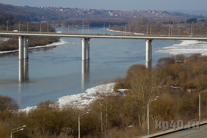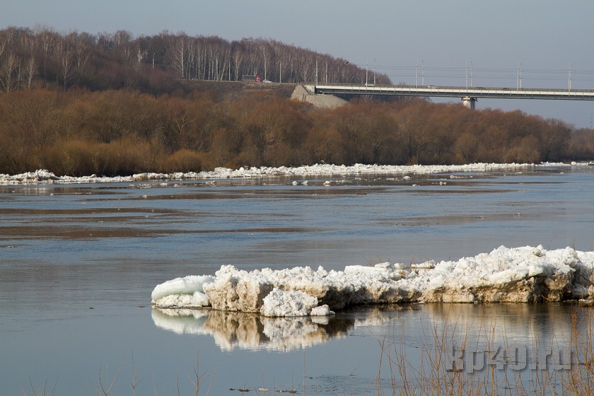 Река Угра, по прогнозам, поднимется примерно на 3,2-4,8 м. Опасным считается уровень 7,5 м. В данный момент на реке в районе гидропоста в Товарково наблюдаются остаточные забереги. Уровень воды – 244 см. За сутки он повысился на 34 см.