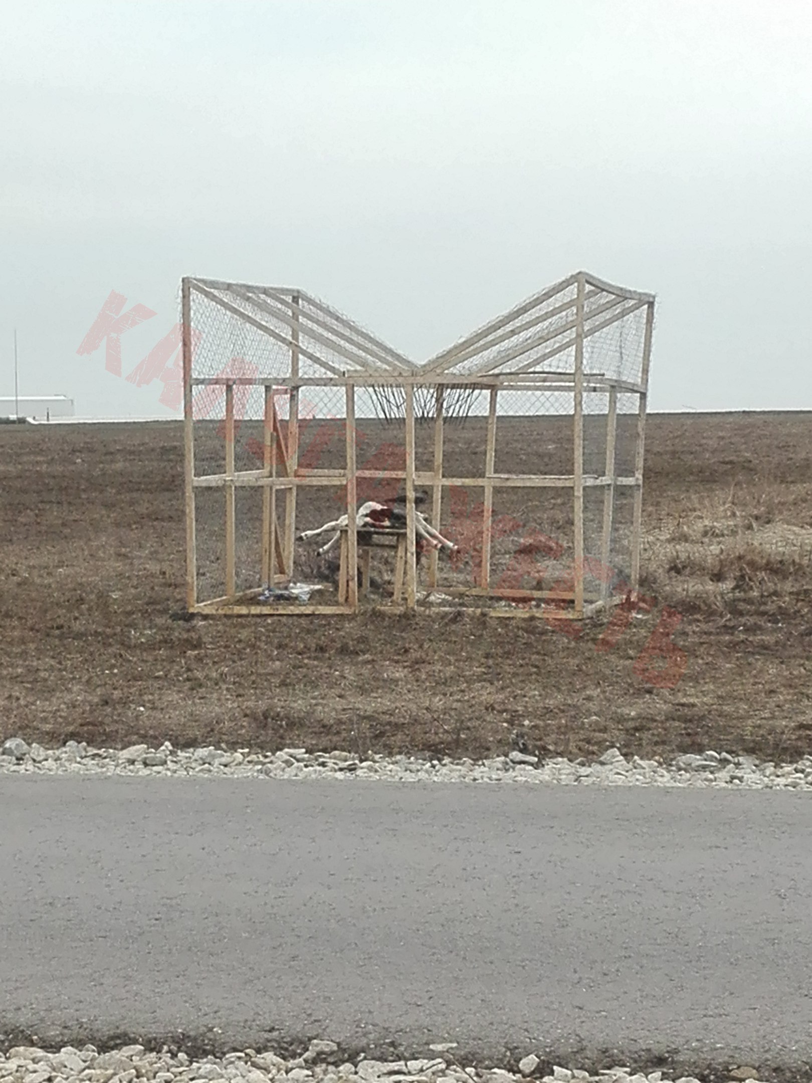 В понедельник, 13 марта, появилась фотография, сделанная в районе аэропорта «Калуга». Внутри деревянной конструкции, обтянутой сеткой, располагается труп телёнка. Снимок был опубликован в группе «Калуга жесть». Представители аэропорта рассказали kp40.ru, что это за конструкция и для чего используется.