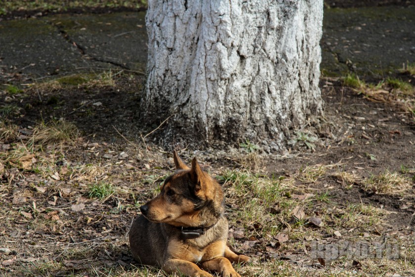 Дерево пока охраняет только пёс Малыш.