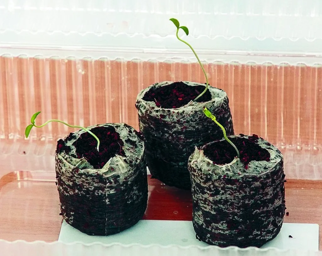 Таблетки с проросшими семенами я переложила в другую «теплицу» - открытую. Поскольку окна нашей редакции выходят на северную сторону и солнце к нам заглядывает нечасто, моё «балконное чудо» решили перенести в офис к нашим коллегам из журнала «Золотой квадрат». В их кабинете, в отличие от нашего, весь день солнечно.