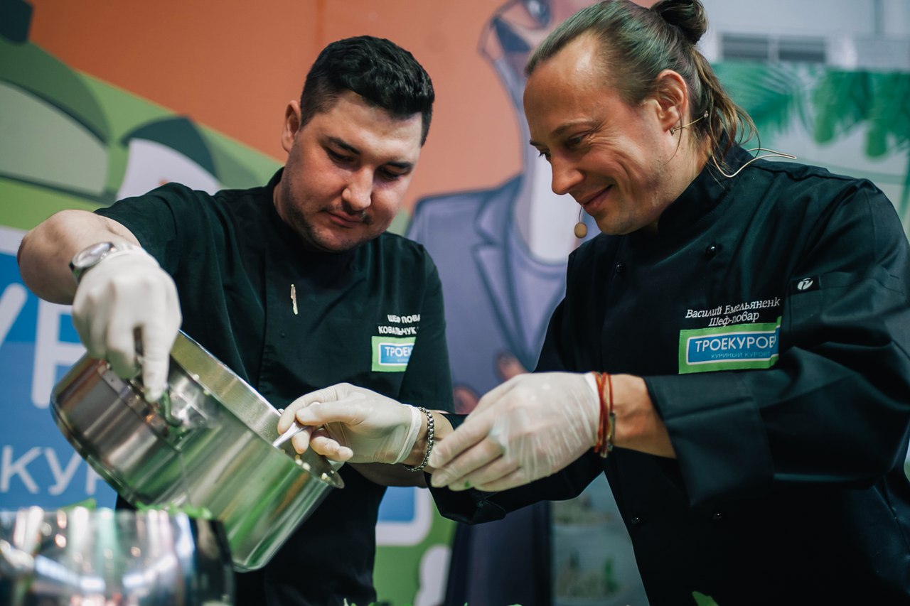 Известный московский шеф-повар Василий Емельяненко – консультант кулинарных шоу «МастерШеф», «Реальная кухня», «Время обедать», «Два с половиной повара», ведущий авторских мастер-классов – разработал специальное меню для мероприятия. Все блюда, приготовление которых демонстрировал Василий, были настоящим эксклюзивом. За 2 дня гости не только узнали секреты приготовления, но и попробовали разные новые блюда, среди которых были вок куриный в кисло-сладком соусе с птитимом и зелёным салатом; суп из рубленых колбасок с добавлением турецкой чечевицы; запечённые в специях крылья с солёным огурцом и киноа.