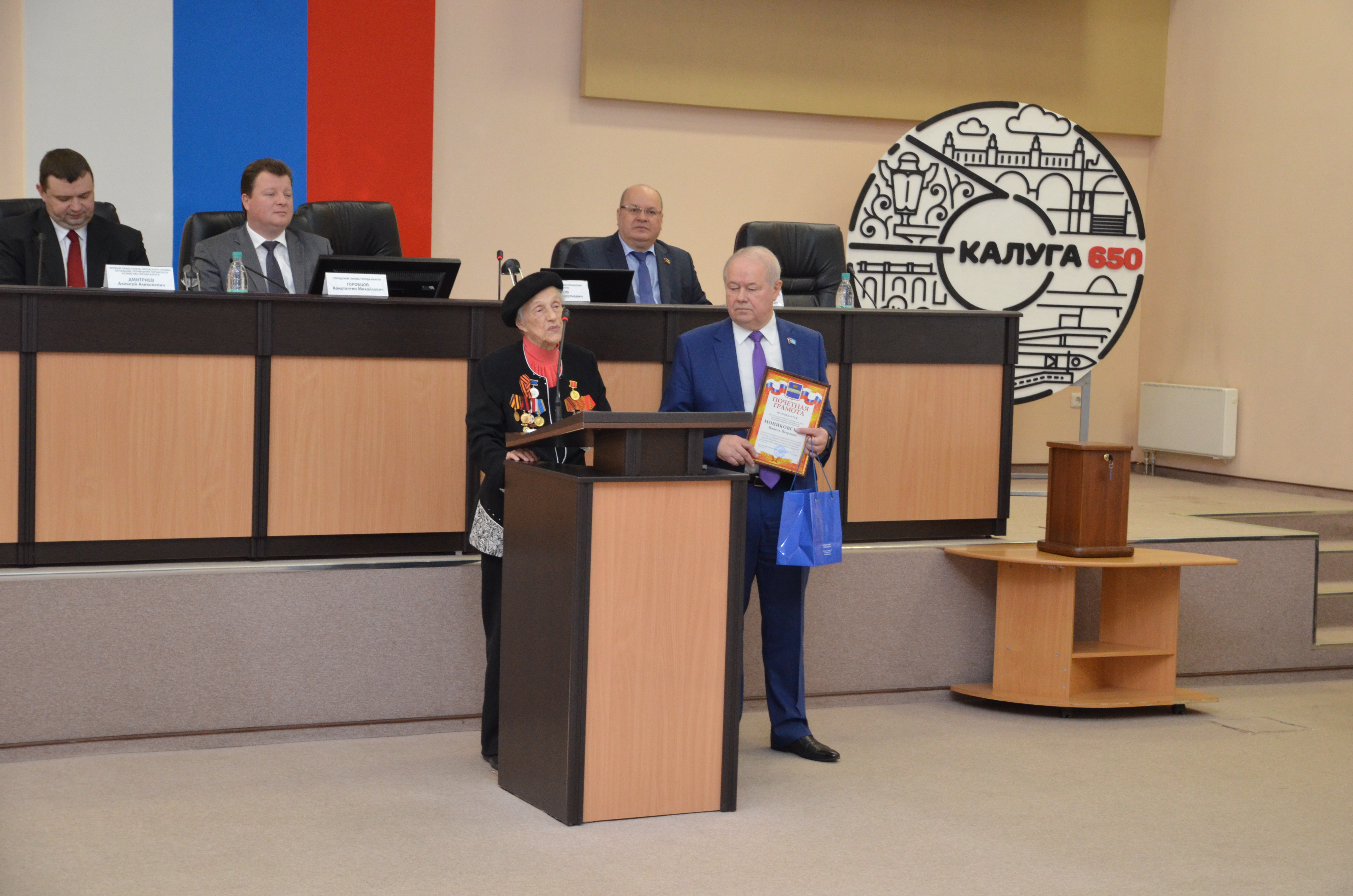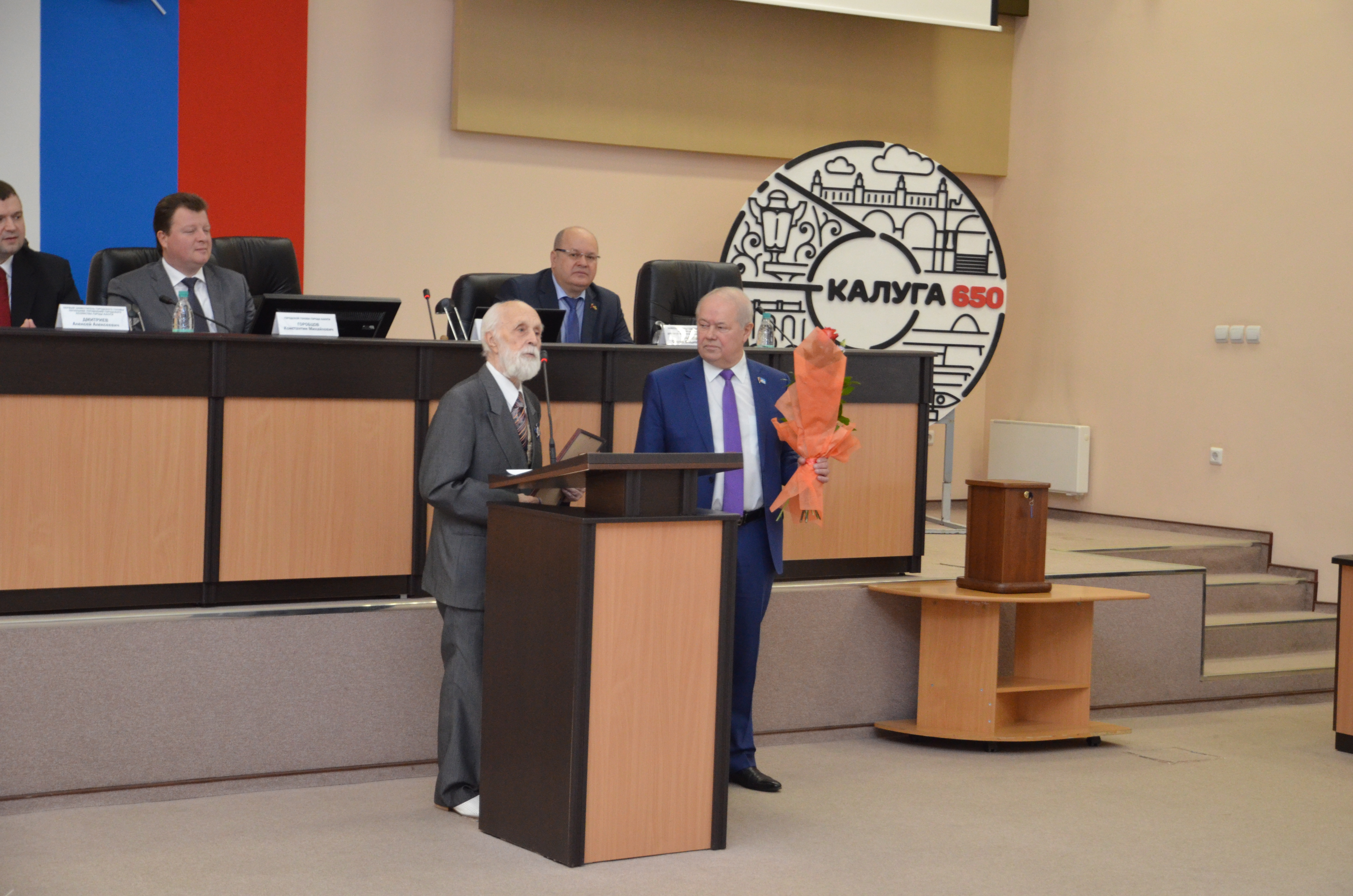 Перед началом работы Глава городского самоуправления поздравил с юбилейными датами и вручил Почётные грамоты Председателю совета Калужского областного отделения «Всероссийского общества охраны памятников истории и культуры» Александру ДНЕПРОВСКОМУ и Председателю правления Калужской областной благотворительной ассоциации жертв политических репрессий Нинель МОНИКОВСКОЙ.