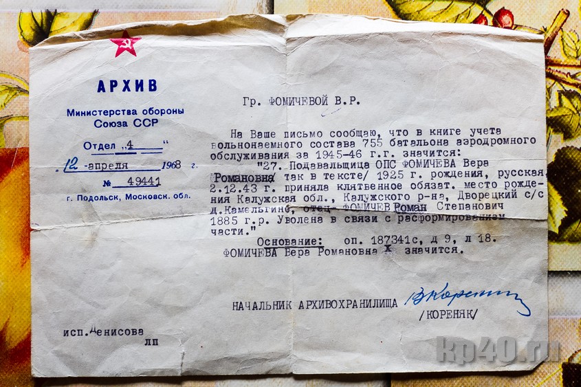 - Там к этому вопросу отнеслись очень внимательно. Попросили прислать фотографии документов. На следующий день перезвонили и сказали, что Вера Романовна подходит под звание «Ветеран войны». При мне составили обращение в военный архив в Подольске, чтобы там дали подтверждение, что Вера Романовна была в составе именно действующей армии.