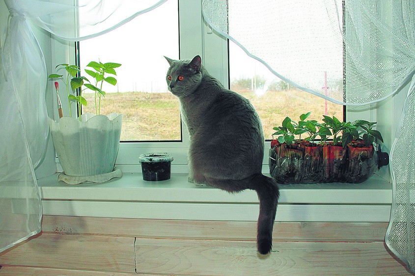 Кошку Фросю молодые, сочные и аппетитные ростки перцев, помидоров и физалисов, не интересуют ничуть.
