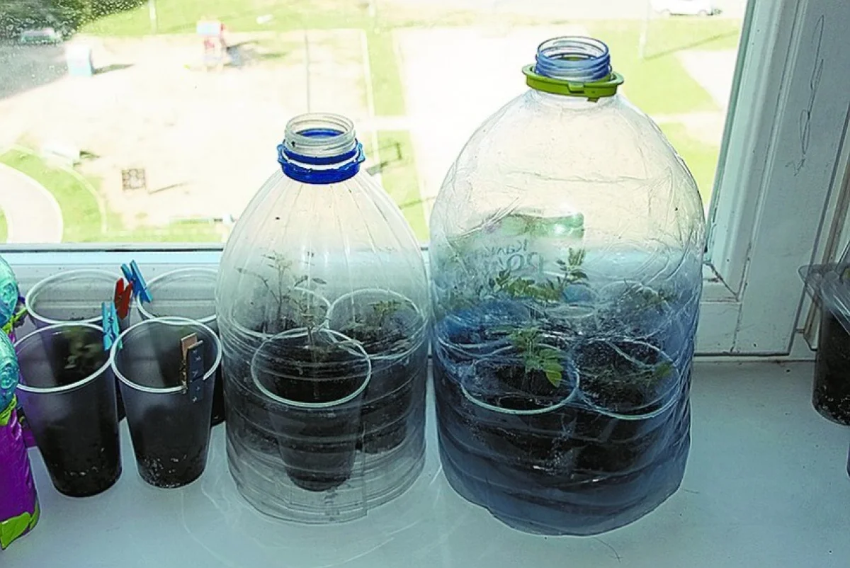 Решить проблему помогла участница нашего «Дачного марафона» Екатерина ШЕВЕЛЁВА. На её страничке в соцсети я увидела фото фиалок, спрятанных под «купол», сделанный из пятилитровой пластиковой бутыли. Взглянув на эту конструкцию, я поняла: вот оно — то самое гениальное и простое решение, которое поможет спасти мои помидоры от кошки!
