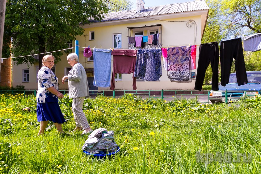В одном из двориков пожилые женщины развешивают бельё и разговаривают по душам. При виде фотоаппарата, дамы решили поведать о своих проблемах.