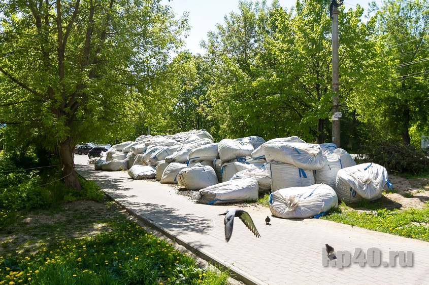 Рядом с бараком № 13 по улице Болдина на пешеходную дорожку вывалены мешки.