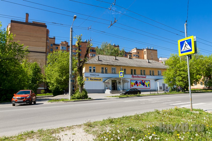 На одной стороне улицы Болдина в советское время был хлебный магазин, на другой – молочный. Теперь множество небольших магазинчиков, на фоне которых выделяется многоэтажка.