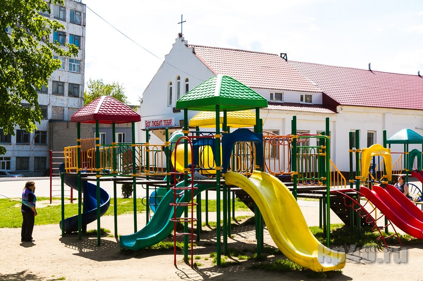 Рядом - церковь «Благодать» с вывеской «Бог любит тебя!»