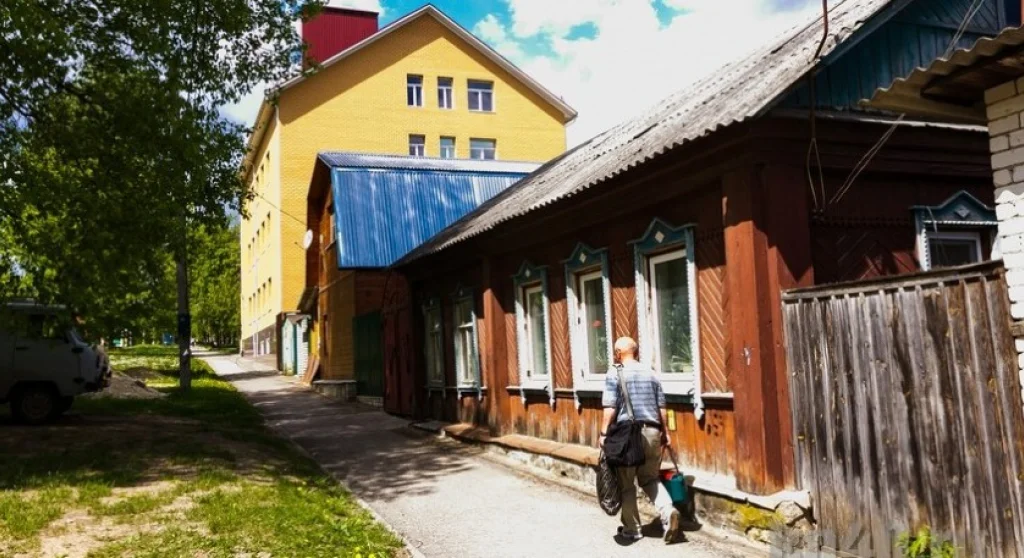 За закрывшимся досуговым центром тянутся жёлтые двухэтажки. Жители прекрасно знают, что их дома есть в списке на снос, но уже не верят в то, что это когда-то произойдёт.