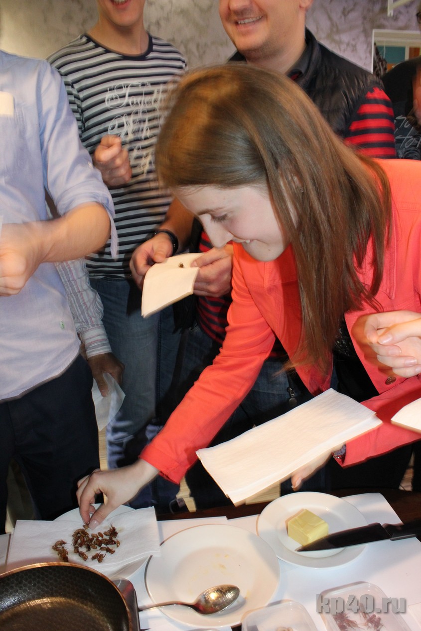 Сначала сам конкурс воспринимался как шутка. А когда на столе появились сковородка, масло, шоколад и коробочки с живыми, извивающимися насекомыми, участники поняли – всё всерьёз.