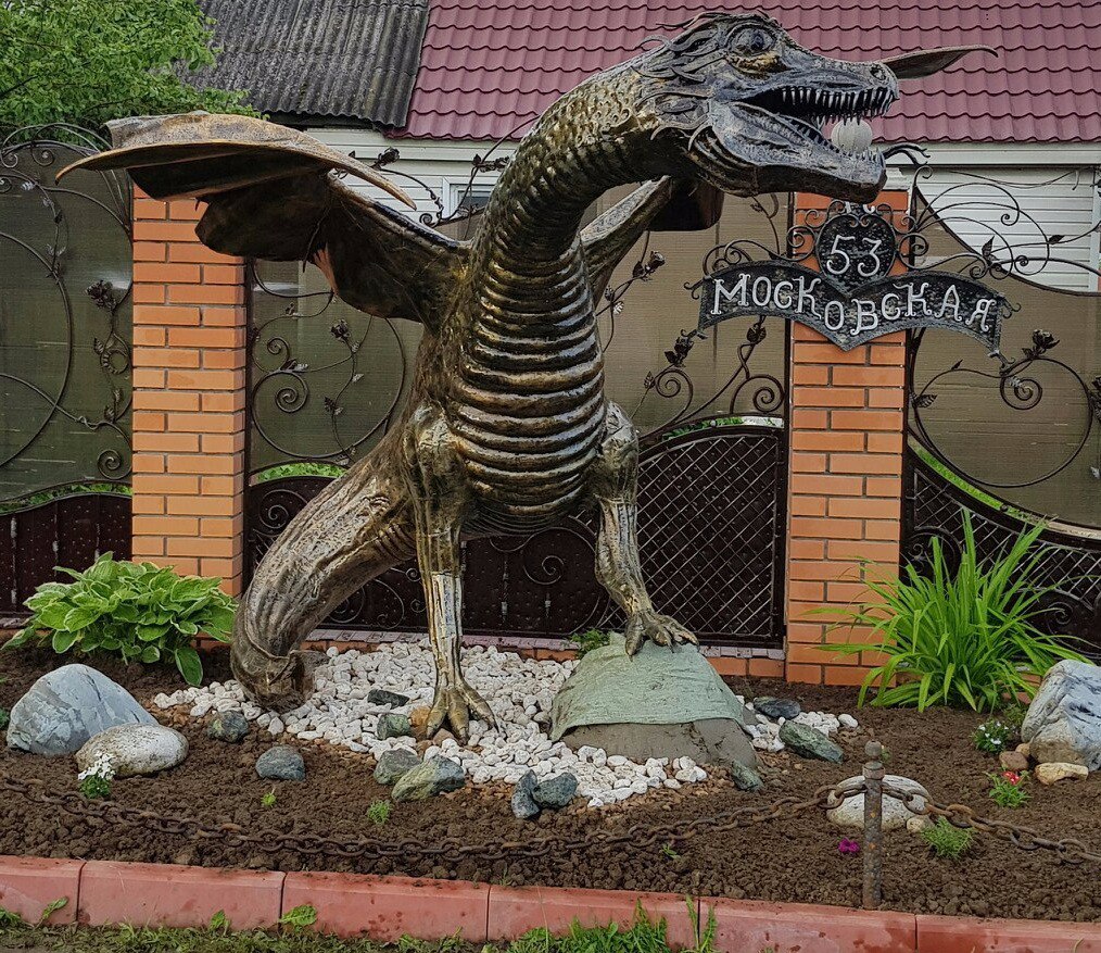 В Обнинске на улице Московской появился гигантский дракон из железа. Его смастерил местный житель. Высота скульптуры - чуть более 2,5 метра.