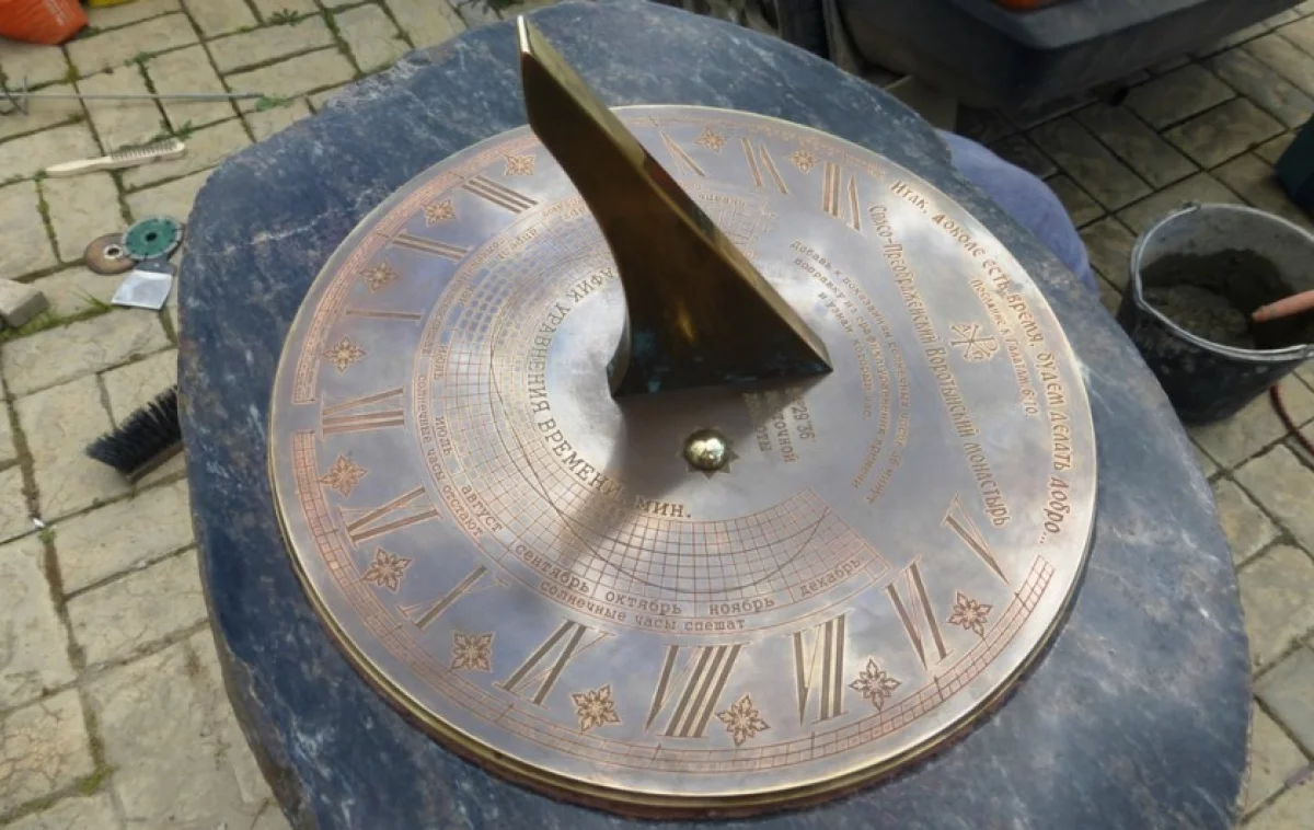 На минувшей неделе в селе Спас на территории Спасо-Преображенского Воротынского монастыря появились солнечные часы. Они предназначены для измерения истинного солнечного времени на меридиане, проходящей через монастырский двор, и для вычисления среднего времени Московской часовой зоны, то есть – времени, которое мы привыкли узнавать по наручным часам и мобильным телефонам. Чтобы им было понятнее, как пользоваться солнечными часами, инструкция награвирована прямо на циферблате.