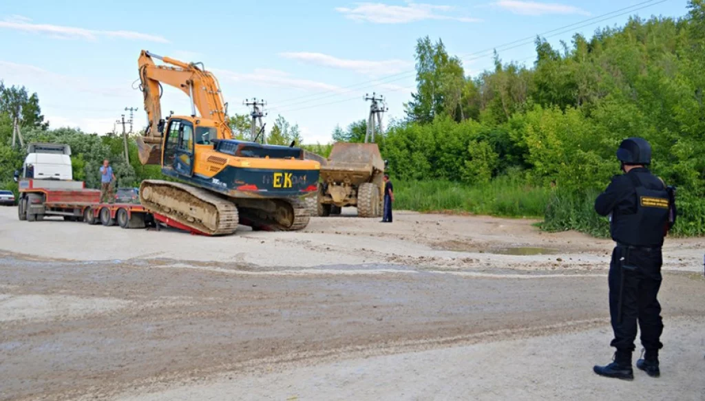 - Судебными приставами было организовано принудительное изъятие землевозов и экскаватора, но здесь сотрудники ведомства столкнулись с активным противодействием: спецтехника была спрятана в лесу на территории карьера. К тому же, у неё были спущены колеса, - сообщает в среду, 9 августа, пресс-служба УФССП по Калужской области.