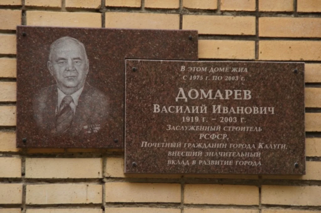 Во вторник, 8 августа, на доме №47 по улице Циолковского торжественно открыли мемориальную доску заслуженному строителю РСФСР, почетному гражданину Калуги Василию Ивановичу ДОМАРЁВУ.