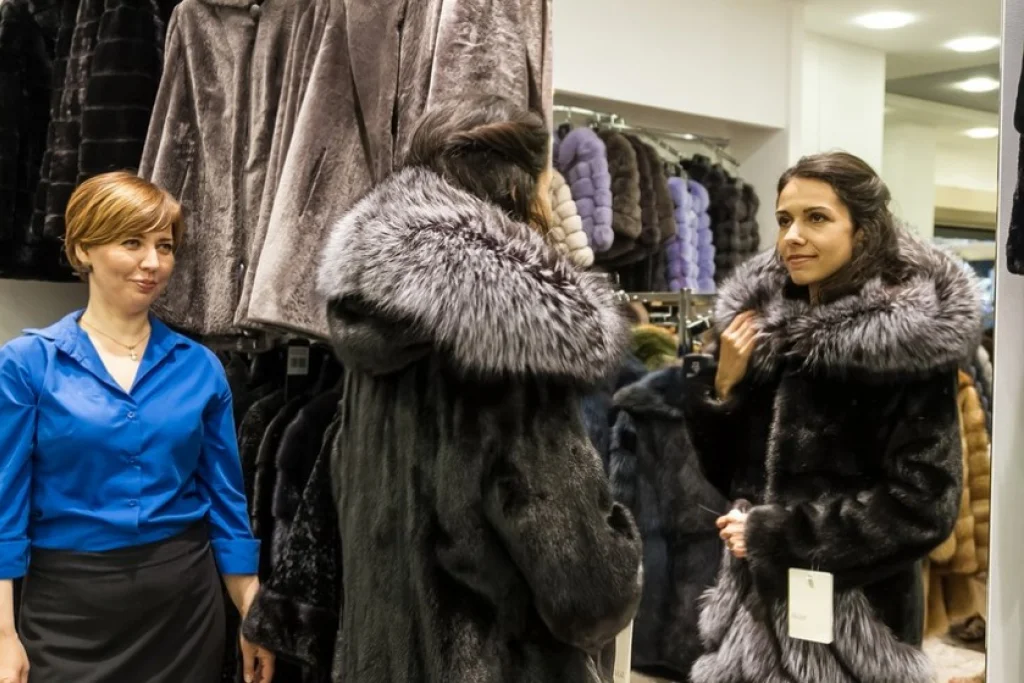 В магазине – ажиотаж: конечно, чем больше выбор, тем труднее принять решение. Хорошо, что спутника можно усадить в комфортное кресло, а самой отправиться в сопровождении консультанта на поиски своей идеальной шубы.