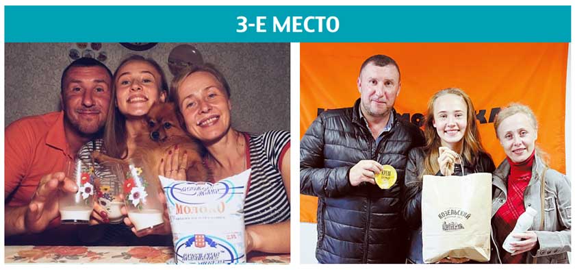 — Я периодически просматриваю новости на вашем сайте. Увидела объявление о конкурсе, и мы с мужем Алексеем и дочкой Настей решили поучаствовать. Продукцию Агрофирмы «Оптина» покупаем давно. Каждый день у нас на столе — молоко и кефир, сливочное масло. Это наш, местный производитель! По ценовой категории и качеству продукция Агрофирмы «Оптина» для нас — лучшая.