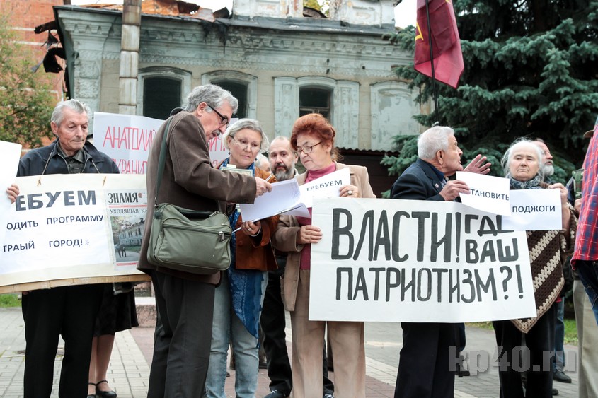 Акция протеста стала реакцией на «лето пожаров». Видимо, именно под таким названием войдёт в историю Калуги лето 2017 года. За прошедшие три месяца в областном центре сгорело пять исторических зданий – больше, чем когда-либо. Калужские краеведы убеждены, что поджоги были намеренные.