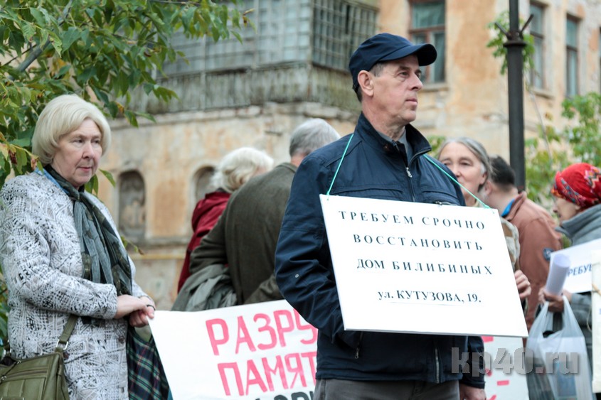 «Тихой демонстрацией» назвали вчерашний пикет у дома купцов Билибиных на Кутузова, 19, сгоревшего минувшим летом, организаторы акции «Сохраним старую Калугу». Участников было немного – человек 20. Тихо пришли в условленное место, развернули плакаты с требованиями в адрес областных и городских чиновников. Правда, ни тех, ни других на пикете не было.