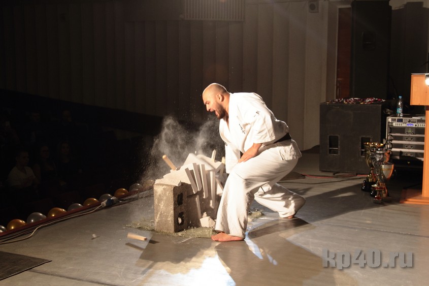 Пока на сцену готовились выйти девушки, каратисты демонстрировали своё мастерство.