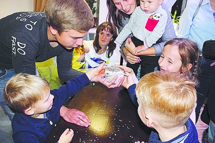 — Африканский ёжик. Он живёт у меня дома. Таких ежей можно заводить, как маленьких собачек. Одна из проблем — им очень сложно постригать коготки: у них хрупкие лапки. А сами в домашних условиях они не могут их стачивать. И никогда не кормите ёжика молоком, у него будет несварение, вплоть до смертельного исхода. Ёжики любят мышей, сырую курицу, ведь они хищники.