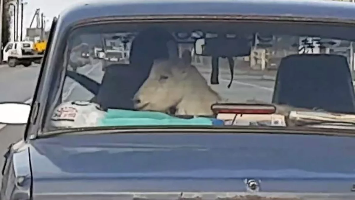 Как шутят в соцсетях, козе взгрустнулось из-за того, что в машине тесно.