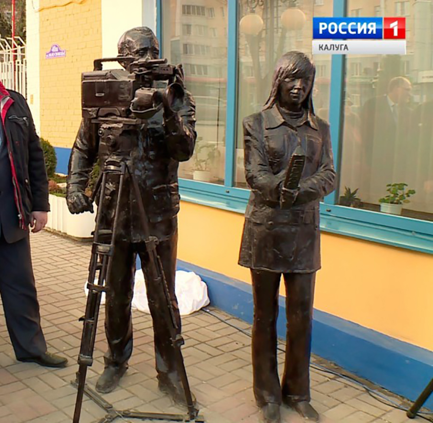 В четверг, 9 ноября, на Телевизионной площади в Калуге открыли скульптурную композицию – журналиста и телеоператора. Над проектом работала скульптор Светлана Фарниева. Именно она создала, в частности, скульптуры девушки у театра, Циолковского с велосипедом на Театральной улице и ветерана у площади Победы.