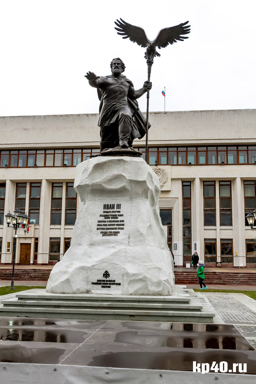 В воскресенье, 12 ноября, в Калуге на площади Старый Торг было многолюдно. Собравшиеся – в основном, сотрудники областных министерств и городских управлений, – пришли, чтобы понаблюдать за торжественной церемонией открытия памятника Ивану III, о котором много говорили, но который до вчерашнего дня мало кто видел. Как мы рассказывали, одобрение на его установку общественность и городские депутаты фактически давали вслепую.