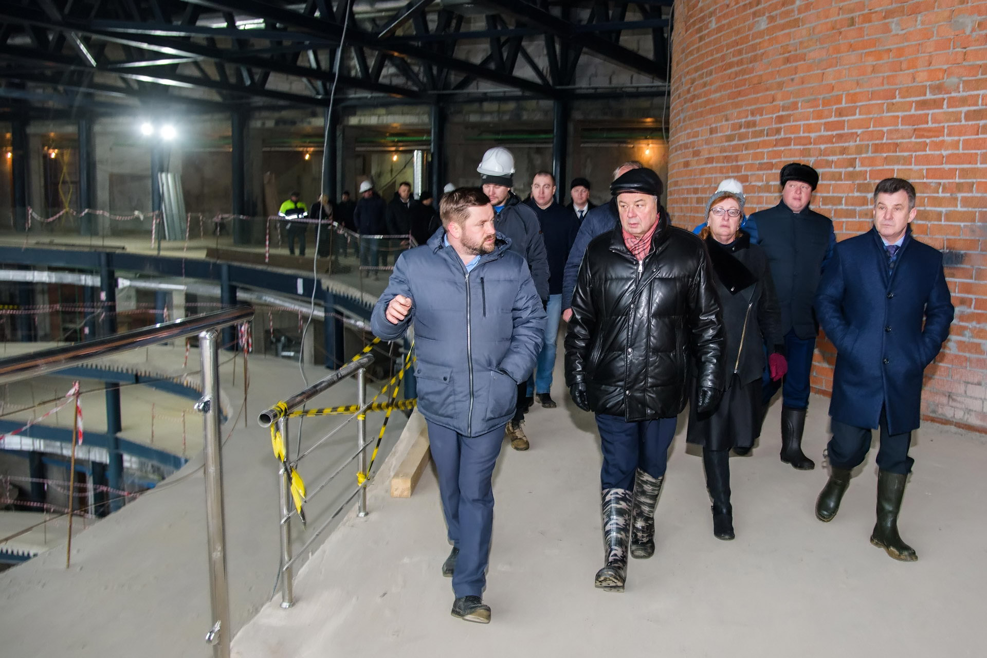 По информации подрядчика, в настоящее время работы по строительству объекта выполнены на 80%. Практически полностью готовы монолитный каркас, перекрытия, лестницы, металлоконструкции, водопровод, ливневая канализация и теплотрасса. Монтаж окон выполнен на 85%, утепление фасада – на 70%, укладка гранита по эксплуатируемой кровле – на 40%. На объекте занято около 200 человек и 8 единиц строительной техники.