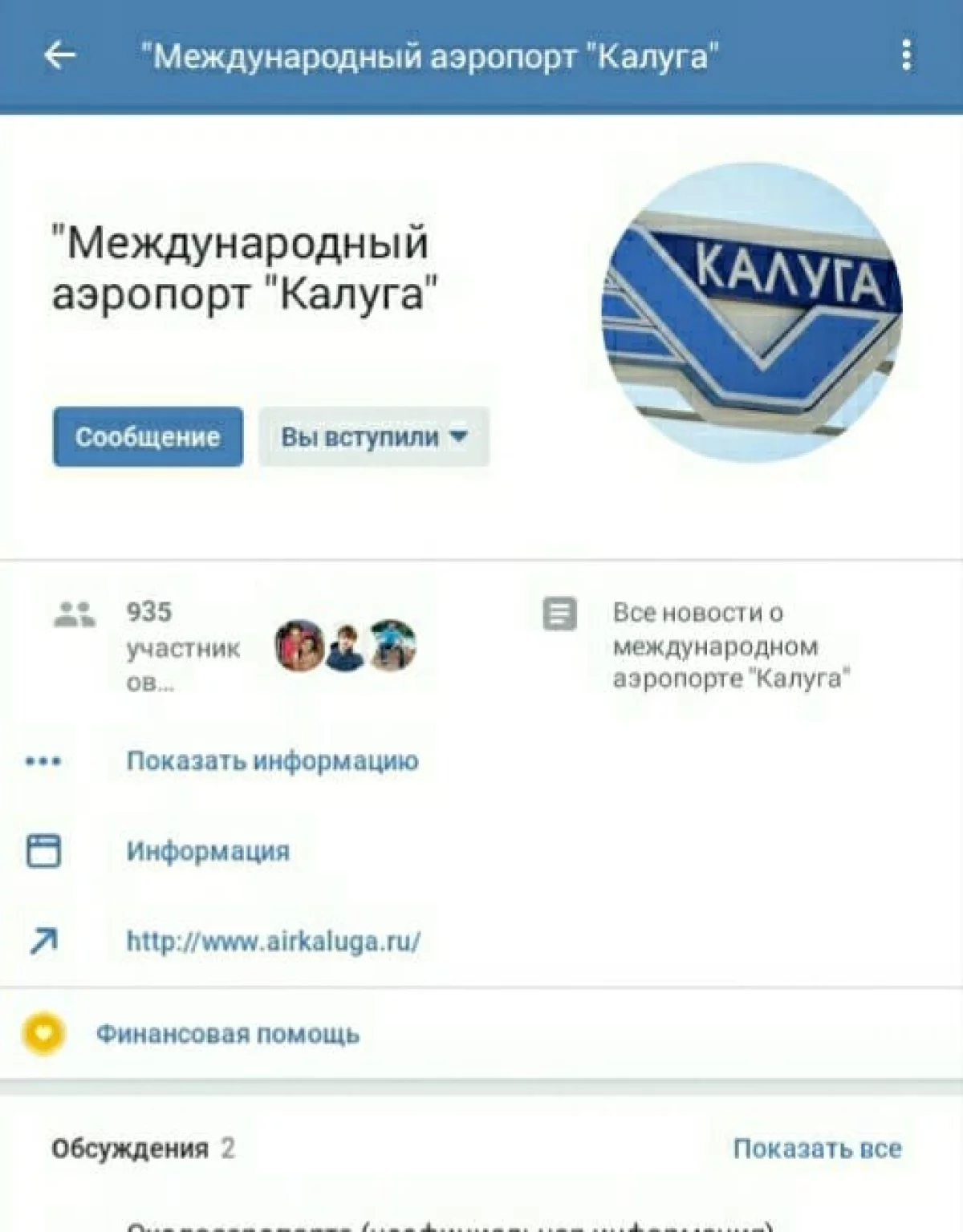 Во вторник, 21 ноября, в социальных сетях была опубликована информация о том, что на странице международного аэропорта «Калуга» в соцсети «ВКонтакте» появилась кнопка «Финансовая помощь», нажав на которую, пользователи оказываются на странице сбора пожертвований для аэропорта.