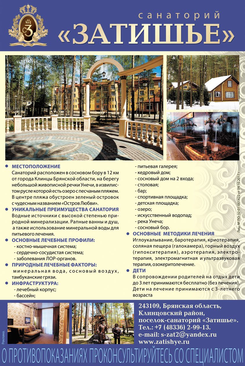 Санатории Калужской области в большинстве своем специализируются на лечении опорно-двигательного аппарата, в перечне их услуг — ежедневные массажи направленного действия, физическое оздоровление, посещение тренажерных залов и так далее. Ну и стоит обязательно отметить, что на санатории в Калужской области цены самые низкие по ЦФО. Так что места здесь обязательно бронируйте заранее!